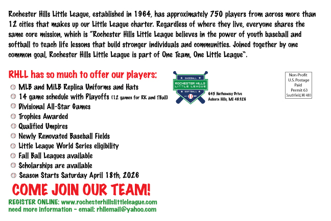 RHLL is looking for umpires for the 2026 Spring season! Umpires must be at least 14 years old by April 18th. If interested, please contact our Umpire in Chief at [email protected]. We are looking to recruit umpires of all experience levels!